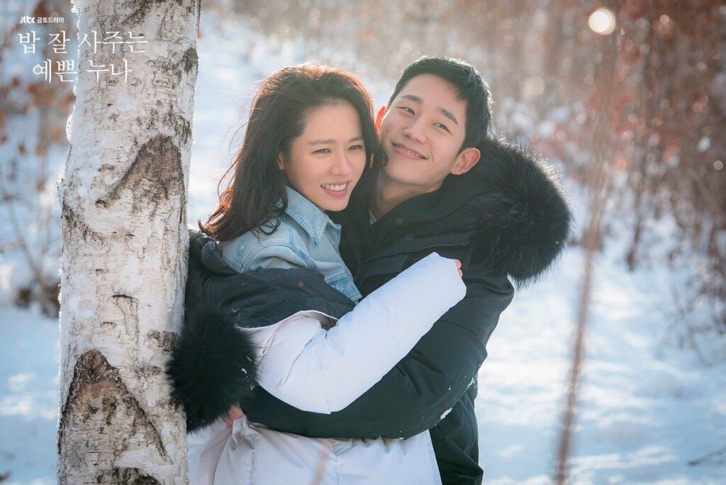 Теперь смотрю дораму с не менее странным названием - "Красивая нуна, что покупает мне еду". "Нуна" - обращение младшего брата к старшей сестре, в данном случае так обращается молодой человек к подруге своей старшей сестры. В эту подругу он влюбился, а она пока не очень воспринимает его всерьез, потому что все считает его маленьким и вспоминает, как катала его на спине. Девушке - 35, молодому человеку где-то к тридцати, ничего особенного.