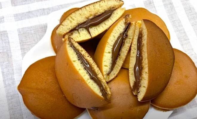 Как приготовить самые вкусные блины Дораяки японские с шоколадной начинкой рецепт своими руками. Сегодня хочу поделиться рецептом японские блинов дораяки, я их буду делать шоколадной начинкой. Посмотрите какие они воздушные, какие мягкие, какая пористая структура. Попробовав один раз это будет один из любимых десертов, и готовятся они очень просто. Для приготовления мне понадобится 2 яйца, 2 ложки сахара, 0.5 чайной ложки ванильного сахара, ложка меда, 90 грамм муки, 1 чайная ложка разрыхлителя, 5 ложек воды.