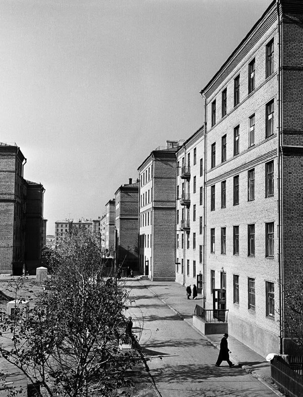 Новые жилые дома, построенные в 1959 году для рабочих завода имени Ильича по Нагатинскому шоссе в Москве. «Ободранные» сталинки Типовое сталинское строительство довольно сильно отличалось от нарядного «номенклатурного жилья» того времени - фасады зданий были почти плоскими, однако стандартный лепной декор все же присутствовал. Само собой, господствующий в архитектуре стиль был «тормозом» на пути ускоренного массового строительства. Под эгидой оптимизации архитектуру решено было запретить вовсе, к тому же «борьба с излишествами» крайне удачно укладывалась в концепцию десталинизации. Постановлением ЦК от 4 ноября 1955 года № 1871 «Об устранении излишеств в проектировании и строительстве» обозначило новый вектор развития советского зодчества. «Рабочие сталинки», строительство которых продолжалось вплоть до конца 50-х, теперь напрочь лишились какого-либо декора (за что и были в народе названы «ободранными»), а первые «хрущевки» и вовсе стали образцом скромности, воплощенным в железобетонны