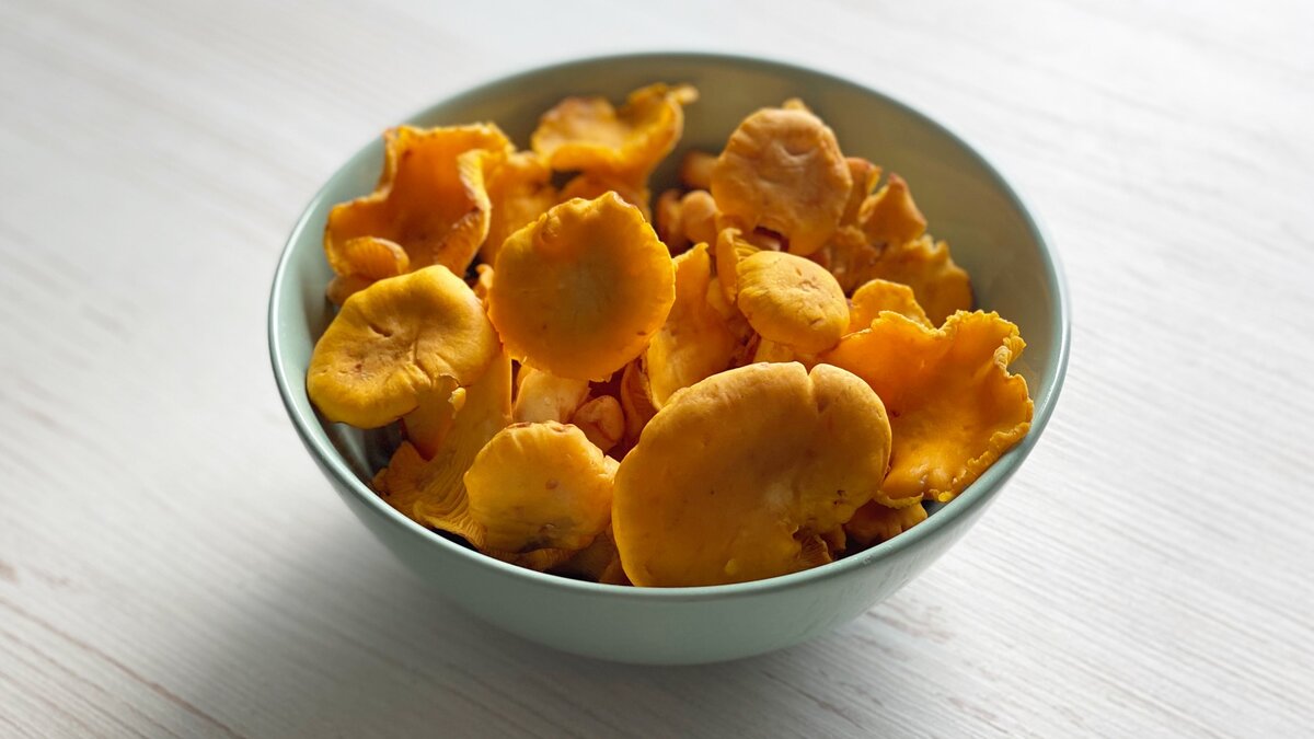 Это супчик получается красивым и очень вкусным. Нежный вкус лисичек, приятно оттеняется лёгкой сладостью тыквы, а благодаря добавлению сливок, этот простой суп превращается в изысканное блюдо для гурманов. Рекомендую попробовать. Вам точно понравится! Предлагаю посмотреть короткое видео с подробностями и нюансами приготовления: Как приготовить: 200 г лисичек замачиваю в холодной воде на 20-30 минут, тщательно промываю каждый грибок и обсушиваю. Крупные грибы нарезаю, а маленькие оставляю целыми. Половину очищенной луковицы нарезаю мелким кубиком. 2 зубчика чеснока измельчаю с помощью пресса. Очищаю от кожицы 300 г тыквы и нарезаю кусочками. В кастрюлю с толстым дно