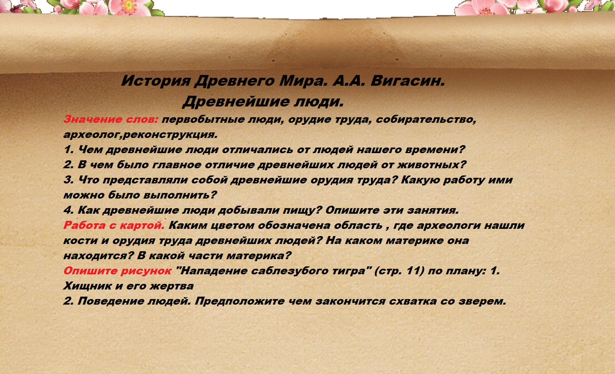 История Древнего Мира 5 класс. А.А. Вигасин.Параграф 1. Древнейшие люди. Ответы.