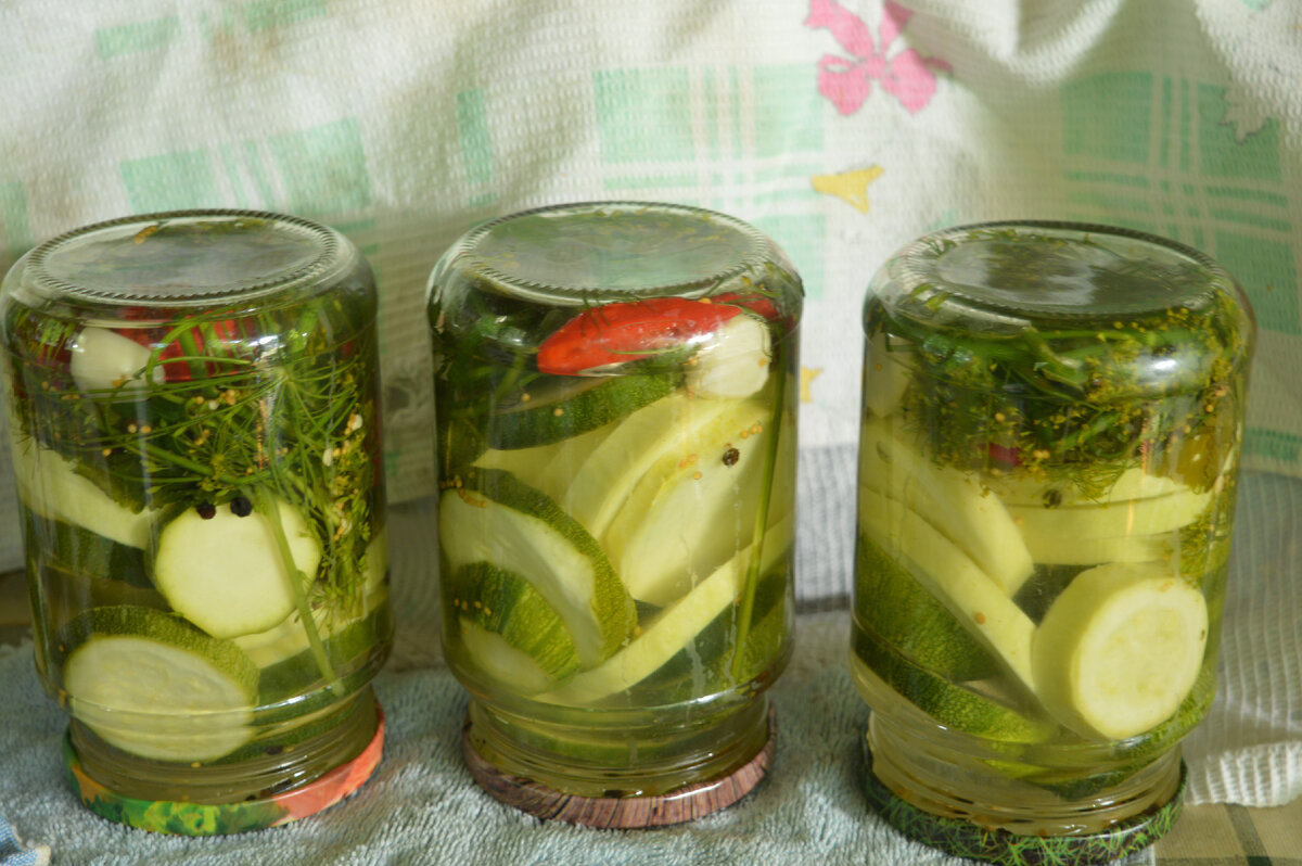 Запасаемся. Очень вкусные кабачки в ядреном маринаде