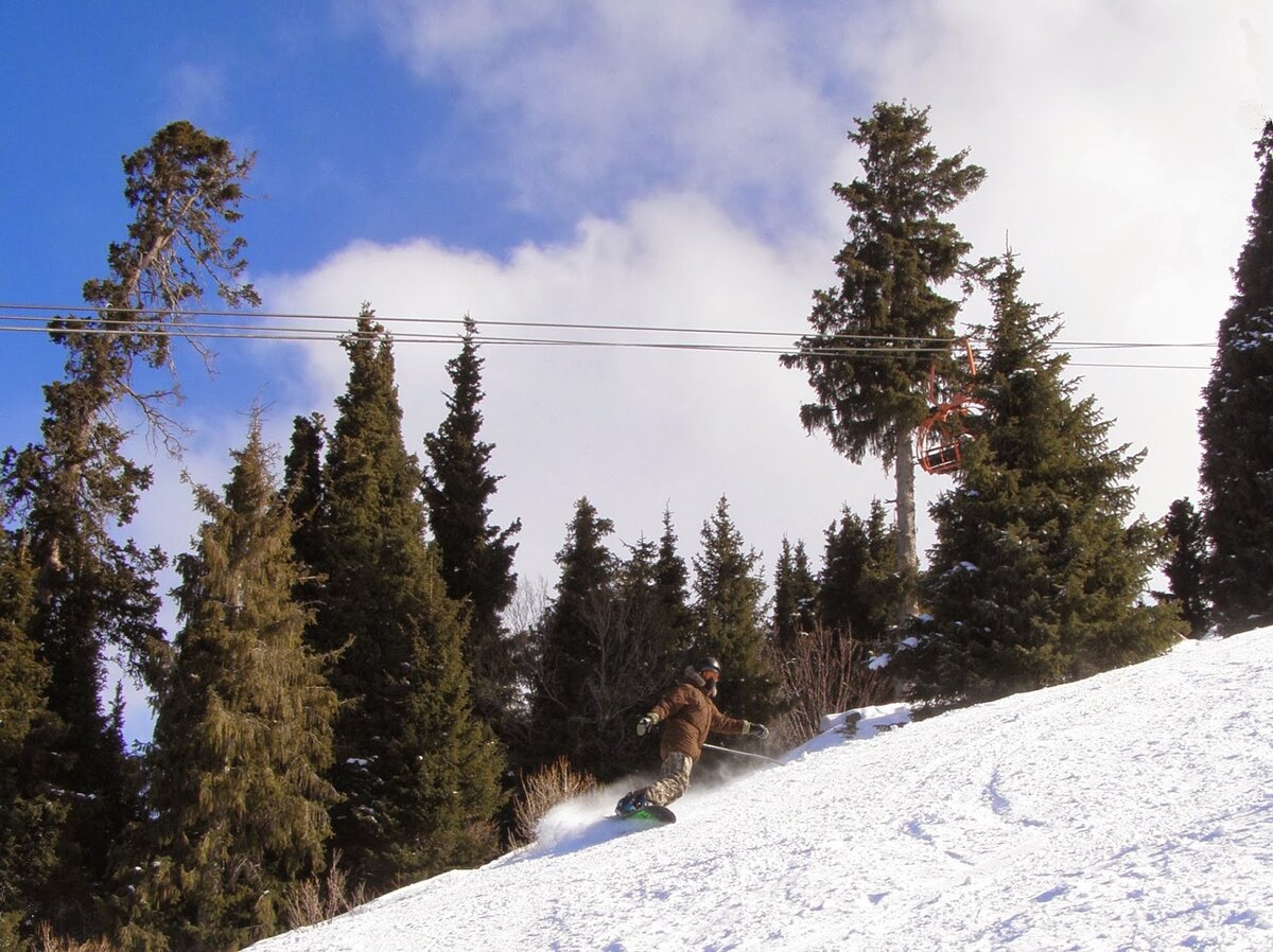 Каракол расположен в Киргизии. Из Москвы до Бишкека самолётом 3тыс.км за 4 часа, а далее на машине через полстраны - 400км за 6 часов. Часть пути проходит в непосредственной близости от границы с Казахстаном, а около половины пути - вдоль северной береговой линии Иссык-Куль. Это высокогорное озеро занимает почётное 7 место среди самых глубоких озёр мира, слегка солёное 5,90 ‰, не замерзает зимой. Сдвиг во времени - плюс 2 часа (UTC+6). Вид на горнолыжный комплекс. Состоит он из 2 гостиниц: отель Каприз, ближайший на фото, и горнолыжная база Каракол (3 корпуса + коттеджи), идентифицируется по красным крышам. Нами был выбран корпус 3, с которого можно на доске добраться до подъёмников. Ну вот он Иссык-Куль. Киргизы пишут первую заглавную "Ы", а не "И". Летом тут вполне курортно: песчаные пляжи, солнышко. Озеро второе в мире после Байкала по прозрачности воды. Брызги в кристаллической форме. Но зимой на пляжу тусуются и парят ляхи только мумучки. Вот местная красотка, обратите внимание на