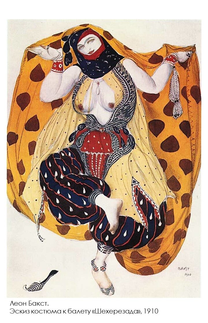 «Русские сезоны» Дягилева – событие, вызвавшее фурор в Европе XX века. Оперные и балетные постановки поразили западную публику самобытностью, новаторством и восточным колоритом. Последний имел особый успех, став лейтмотивом женской моды эпохи. Благодаря премьере балета «Шахерезада», весь Париж узнал о художнике Леоне Баксте. Будучи талантливым сценографом, он создал эскизы костюмов к спектаклю, выступив тем самым в роли дизайнера. Искусная стилизация «под Восток» объявила иллюстрации Бакста модным ориентиром эпохи. Великолепие шелков и мехов и многообразие фактур – от газа и муслина до бархата и парчи; фейерверк красок и оригинальные фасоны – от шаровар до тюрбана; украшательство и богатство отделки – от бахромы до золотого шитья – основные тенденции ориентализма XX столетия, главным выразителем которого по праву считается модельер Поль Пуаре. На его кутюрных решениях несомненно лежит отпечаток «Шахерезады» и «Русских сезонов». Иллюстрации позволяют нам в этом наглядно убедиться.
