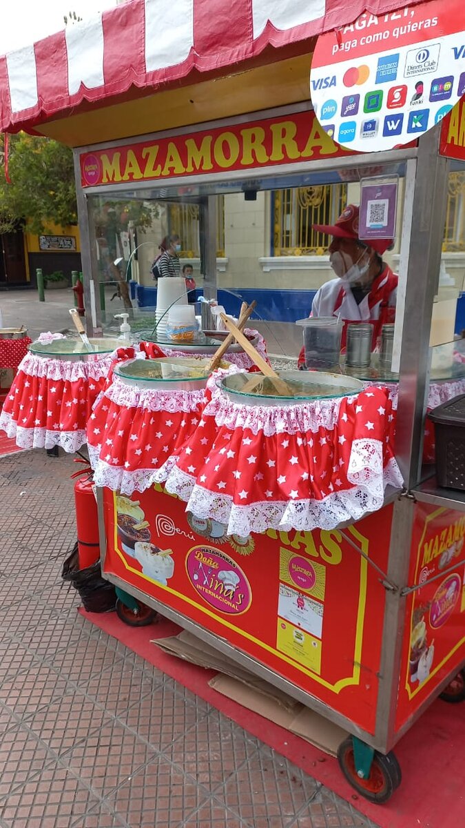 Ла Мазамора Морада традиционный десерт в Перу В колониальные времена десерт появился путем смешивания местных продуктов, таких как пурпурная кукуруза и мука из сладкого картофеля, с сахаром и различными сухофруктами и компотами, такими как перец чили, вишня, курага, яблоко и айва, привезенные из Испании. Эта амальгама породила известную нам кашу. Сегодня пурпурная мазамора стала одним из самых представительных и вкусных десертов в нашей кулинарной культуре.