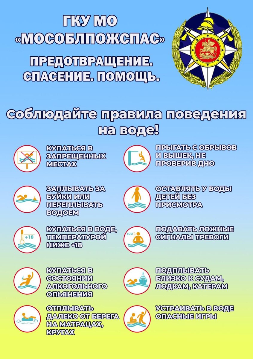 Доброе утро дорогие друзья. 😉😉😉Незнание простейших правил поведения на воде – причина несчастного случая! Летом, с наступлением выходных сотни людей̆ устремляются на отдых к водоемам. Но часто обычное купание оборачивается трагедией̆. ТУ № 5🚒🚒🚒 ГКУ МО «Мособлпожспас» напоминает - главной̆ причиной̆ возникновения несчастных случаев на воде можно назвать отсутствие культуры безопасности у населения и незнание простейших правил поведения на воде. Как избежать несчастного случая на водных объектах? Техника безопасности на воде требует обязательного соблюдения следующих правил: ❌Категорически запрещено находится на водоемах без сопровождения взрослых Желательно купаться только на оборудованных пляжах, где есть все средства для спасения и оказания первой̆ помощи. ❌Нельзя купаться в заболоченных местах и там, где есть тина и водоросли. Лучше всего выбирать водоемы с песчаным дном или галькой̆. ❌Не заплывать за буйки — шансы на спасение резко уменьшаются, если челове