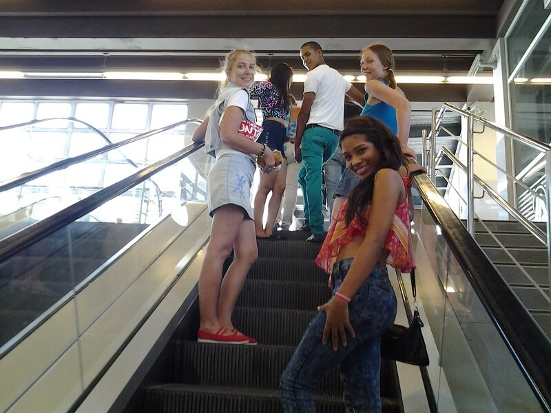 Впервые я оказалась в метро Санто-Доминго в 2014-м году - тогда в гости приехала моя сестра, и мы с мужем повезли её в путешествие по всей стране, заодно навестили в столице сестёр мужа. Всей этой шумной толпой мы гуляли по городу, заодно метрополитен посетили. Определённой цели поездки у нас не было - припарковали машину у одной из станций и поехали на одну из конечных. Веток тогда было всего две (сейчас две с половиной - ниже расскажу), конечных станций - всего четыре. Мы ездили туда, где часть перегонов проходит не под землёй, а над ней, по эстакаде. Примерно как Филёвская или Бутовская линии в Москве. Нашла немного фотографий из той поездки: