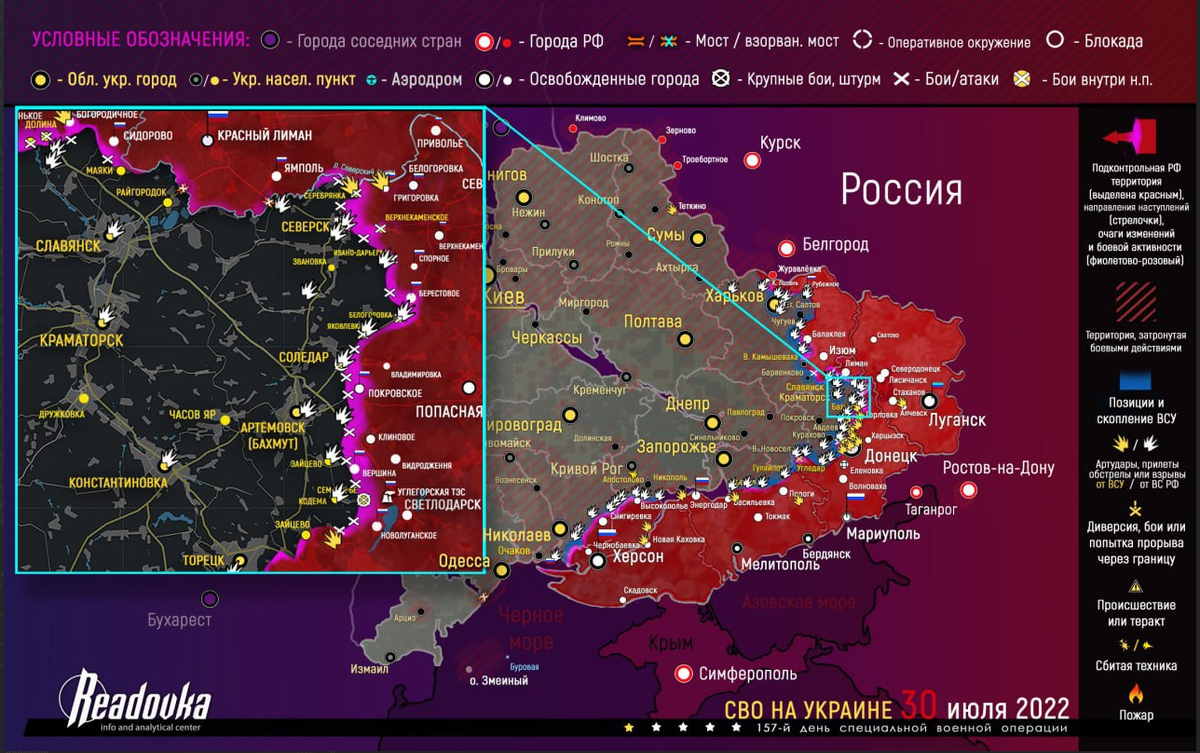 Карта военных действий и ситуация на фронтах вечером 30 июля 2022 года