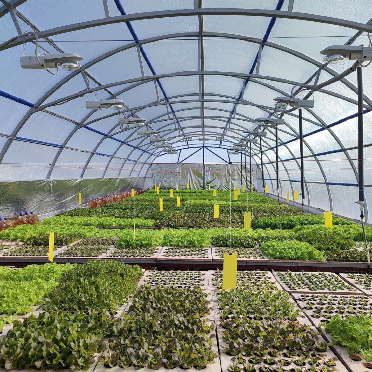 Идея производства продуктов питания за счет энергии солнца вдохновила нас на строительство круглогодичного тепличного хозяйства. Тогда мы еще не знали, что все не так просто в нашем климате средней полосы России… В 2010г. мы начали выращивать и пытаться продавать листовой салат в горшочках. За эти 10 лет мы многое узнали и еще больше научились делать сами: В нашем регионе солнца в январе в 10 раз меньше, чем в июне. И без дополнительного света осенью и зимой растения не растут вообще.. В Республике Марий Эл бывают ураганы с градом, которые за 5 минут могут разбить в решето дешевый и некачественный поликарбонат на теплицах. 1 бабочка, залетевшая в тепло нашей теплицы может отложить свои яйца и нам придется выкинуть урожай на несколько тысяч рублей. А бабочек летом вокруг летают сотни. Зимой у нас бывает -35 градусов, а летом +35. А зелень растет в диапазоне +15 .. +22 градусов. И поверьте, что охладить теплицу летом сложнее, чем обогреть её зимой. Сетевые супермаркеты иногда закрывают с