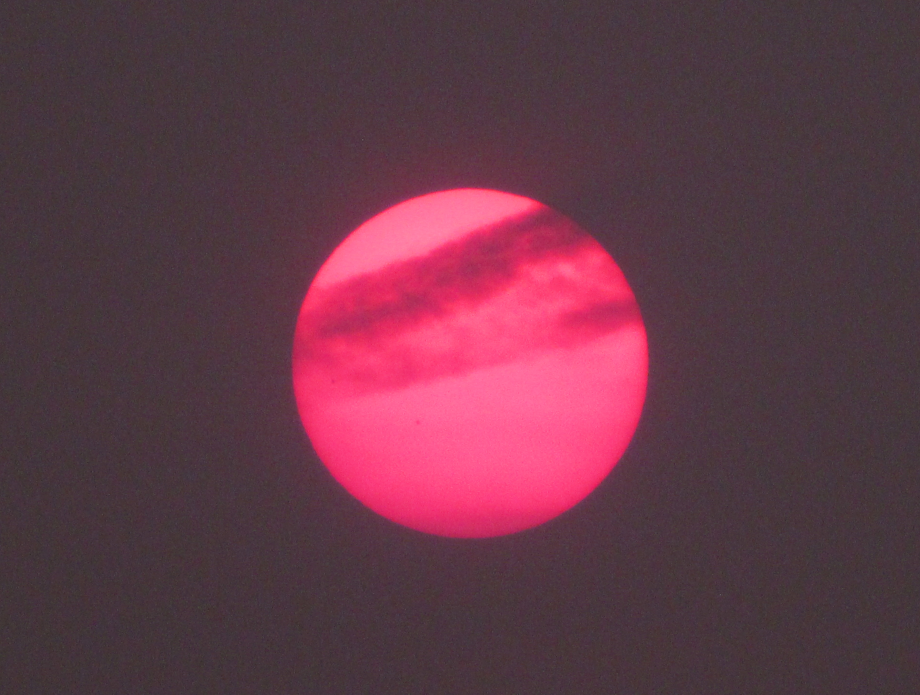 Если бы я жил в 14-м веке, то подумал бы, что началось. Сегодня на небе увидел странный космический объект, который захотелось сфотографировать. Обратите внимание - никаких фильтров, только зум. Возникло подозрение, что это Луна. Луна - круглая, Луна - красная, Луна - быстро передвигающаяся. А что, если бы вот также хорошо был виден красный Марс? У нас бы на Земле из-за этого все было бы по-другому. Тут уже можно было бы рассуждать на тему астрономии и влияния друг на друга космических тел, но у меня астрономия была только в 10-11 классе. При этом за полгода в Интернете про космос я узнал больше, чем на тогдашних уроках астрономии. Фотокарточки сделаны на фотоаппарат. Фотографировать на телефон - это что-то из популярных шуток. - Возьми с собой телефон, что сделать фотографии. Может быть когда-нибудь ученые изобретут фотоаппарат с функцией телефона. А почему у небесного объекта такой цвет? Солнца вообще не видно, небо серое. Наверное, что-то там преломляется, отражается, рассе