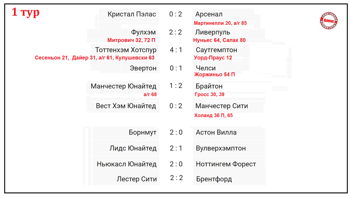 Привет всем любителям футбола! Моя задача рассказать вам о результатах стартового тура АПЛ и таблицах Германии и Франции. Арсенал победил Кристал Пэлас 2:0. В составе двух команды было всего 7 англичан. Молодой нападающий Мартинелли в 2021 году забивал Кристал Пэласу, его клуб выиграл 3:1. Выезд Ливерпуля в Фулхэм выдался не удачным (2:2). Лучший бомбардир чемпионшип Александар Митрович в прошлом сезоне забил 9 дублей и 2 хет-трика. Всего у серба было 43 гола. Один из лучших бомбардиром прошлого сезона Салах забил 121 гол в АПЛ. Тоттенхэм раскатал Саутгемптон 4:1. 62 тысячи зрителей привлёк этот матч. В прошлом сезоне у шпор старт выдался успешным, они в первом туре победили Манчестер Сити. Эвертон проиграл Челси 0:1. Единственный гол на счету чемпиона Европы и обладателя Кубка Чемпионов, Кубка УЕФА и суперкубка Жоржиньо. Эта победа очень важная, ведь в прошлом сезоне Челси ни разу не смог одолеть этого оппонента. МЮ уступил Брайтону 1:2. Манчестер после неудач в товарищеских играх,