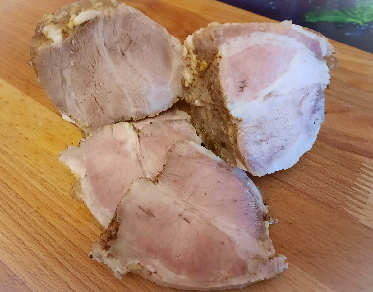 У каждой хозяйки есть свои правила приготовления мяса. У меня они тоже есть. Правила. Ингредиенты. Приготовление. Кусок свинины проколоть спицей в нескольких местах, так оно равномерно внутри просолится, смешать все специи и масло, обмазать свинину, завакуумировать и убрать в холодильник в температуру не выше 4С на сутки. Если нет вакуумного упаковщика, оберните пленкой или положите в стеклянную емкость с крышкой. На следующий день, или через 2-3 дня, выньте свинину, оберните фольгой, плотно,чтобы не вытекали соки, поставьте запекаться при 200С на час. Чтобы не ошибиться, вставьте жаропрочный термометр и выключите,когда свинина достигнет 80С. Готовое мясо вынуть, не вынимая из фольги остудить и убрать на сутки в холодильник. Приятного аппетита!