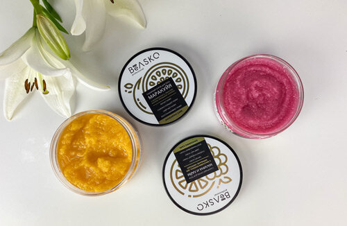 BeASKO Skin предлагает скрабы с натуральным составом, куда входит сахар и натуральные масла. Средства имеют ароматы: