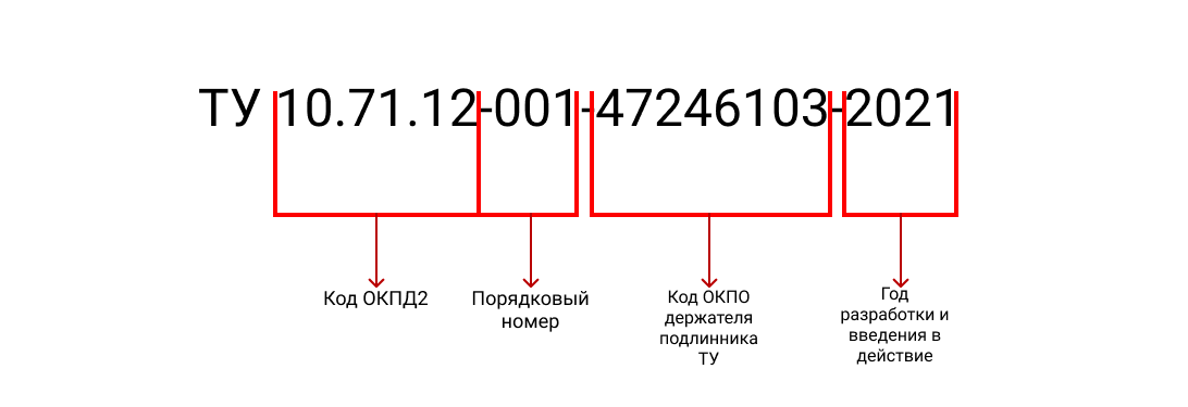 На титульном листе технических условий приводится полный девятизначный код продукта, а в номере ТУ только первые шесть цифр из этого номера.