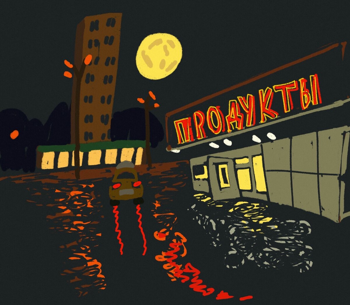 В этой подборке я собрала ночные зарисовки своего района и некоторых других мест. Многие рисунки сделаны в небрежной зарисовочной манере, но не каждой идее суждено стать полноценной работой. А иногда причина прозаична: в тёмное время суток очень хочется поскорее убраться с пленэра подобру-поздорову. :D Ну что же, поехали кататься по ночным улицам! Благо что дождь закончился и вылезла огромная луна — у неё сегодня суперлуние. Суперлуние Зарифа. Казалось бы, школа и школа. Но она построена на насыпном холме — раньше на этом месте были свинарники совхоза имени десятилетия Октября. Санитарную проблему решили, насыпав холм из строительного мусора и увенчав это дело школой. :D Мне кажутся очень волнующими и необычными те части её территории, где есть перепады высот. Например, эти стена и лесенка. Школа в космосе :) Другая школа, осенний вечер и пиксель-арт. Шоссе. Часть вывесок уже изменилась, но Эровита живее всех живых. Эта вывеска привлекла меня тем, что она располагалась на уровне вто