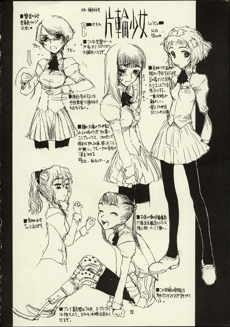 Комикеты, ярмарка отаку-творчества, работающая с 1975 года, существенно поспособствовала развитию малых групп. Изначально создававшиеся как хобби творческие объединения позднее находили спонсоров и становились целыми компаниями. Авторы додзинси создавали собственные серии манги, которые уходили в печать каждый месяц. На одном из таких комикетов было представлено додзинси по фильму «Навсикая из Долины ветров», в группу авторов которой входил художник по имени Райта Хандзё. Среди всех материалов на последней странице была опубликована иллюстрация с эскизами персонажей гипотетической игры. Игра называлась «Katawa Shoujo» (яп. 片端少女).