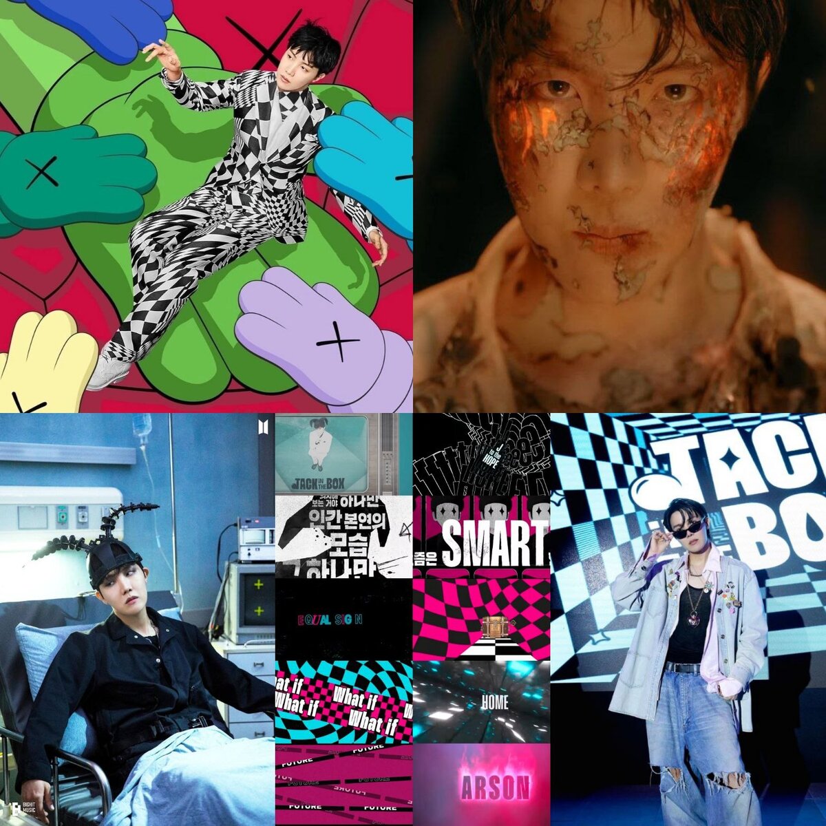 В коллаборации с KAWS j-hope также продемонстрировал свои способности визуального креативного директора, позволив слушателям наслаждаться Jack In The Box не только аудиально, но и визуально.
