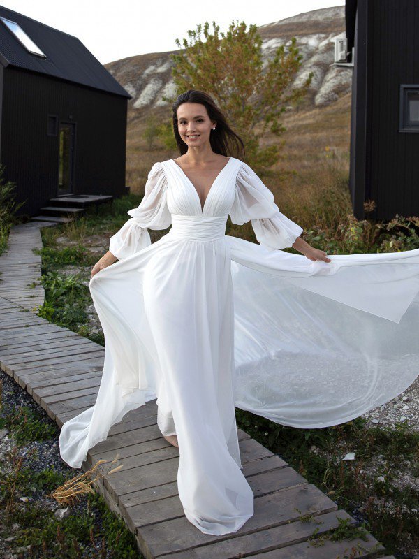 Невесомые ткани, элегантный силуэт и свобода движения – на пике популярности свадебной моды. Лёгкие платья невесты традиционно шьются из светлого, летящего, дышащего текстиля, который будет уместен в тёплое время года. Главная изюминка таких нарядов – отсутствие тяжёлых, крупных кружев, массивных камней и другого декора. Акцент переносится на чёткость силуэта, благородство ткани и максимальную естественность образа.