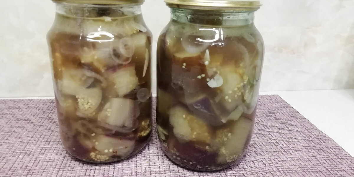 Добрый день. Сегодня я заготавливаю вкусные баклажаны на зиму, по вкусу они напоминают грибы. Очень вкусная заготовочка, готовится быстро и не сложно. 🍆🍆🍆🍆🍆🍆🍆🍆🍆🍆 Нам понадобится : 800 грамм баклажан 80 грамм лука 2 зубчика чеснока Перец чёрный горошком 8 - штук Укроп семена - 2 грамма Лавровый лист - 4 штуки Для маринада: 1 - литр воды 60 - грамм сахара 60 - миллилитров раст. масла 20 - грамм соли 100 - миллилитров 9% уксуса 🍆🍆🍆🍆🍆🍆🍆🍆🍆🍆 📌В итоге у меня получилось ровно на две литровые банки Баклажаны помыла, обрезала кончики и нарезала на крупные кусочки. Положила в чашу и обсыпала солью, перемешала, оставила на полчаса, чтоб вышла вся горечь. Через полчаса промыла баклажаны от соли. Приготовила маринад. В кастрюлю налила 1 литр воды, добавила соль, сахар, растительное масло. Когда вода закипела, всыпала баклажаны и готовила их 5 минут. Лук нарезала полукольцами, чеснок мелко дольками. Через 5 минут к баклажанам добавила лук и чеснок влила 100 миллилитро