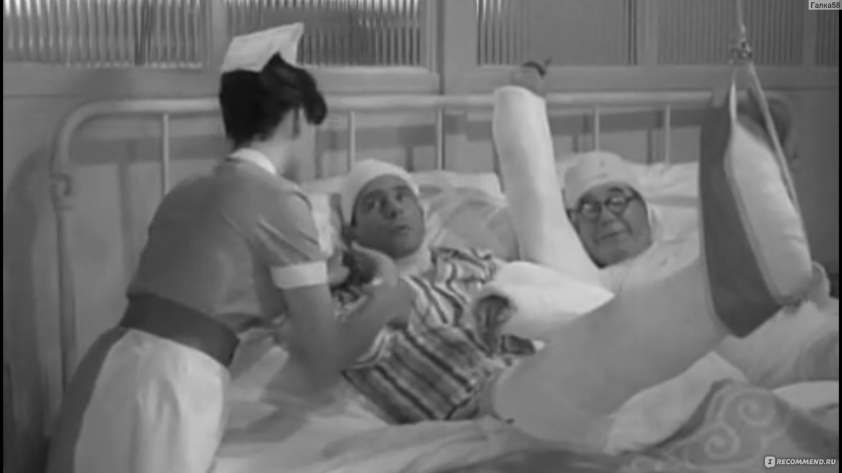 Приключения Питкина в больнице / Всё в свое время / A Stitch in Time. Великобритания, 1963. Режиссер Роберт Эшер. Сценаристы: Генри Блит, Джек Дейвис, Эдди Лесли, Норман Уиздом. Актеры: Норман Уиздом, Эдвард Чепмен, Джанетт Стерк, Джерри Десмонд, Джил Мелфорд и др. Прокат в СССР – с марта 1966. 37,8 млн. зрителей за первый год демонстрации. Британский режиссер Роберт Эшер (1915-1979) получил известность именно, благодаря комедиям с популярным комиком Норманом Уиздомом (1915-2010), который много лет играл своего излюбленного персонажа мистера Питкина, вечно попадавшего в череду веселых приключений. Огромный успех в СССР имела эксцентрическая комедия «Мистер Питкин в тылу врага» (увы, данные по числу миллионов зрителей, посмотревших эту ленту, оказались недоступными). На волне этого успеха для показа в Советском Союзе была куплена еще одна комедия, получившая название «Приключения Питкина в больнице», и она также дала весьма ощутимые кассовые сборы. Но вот культуролог и киновед Александр