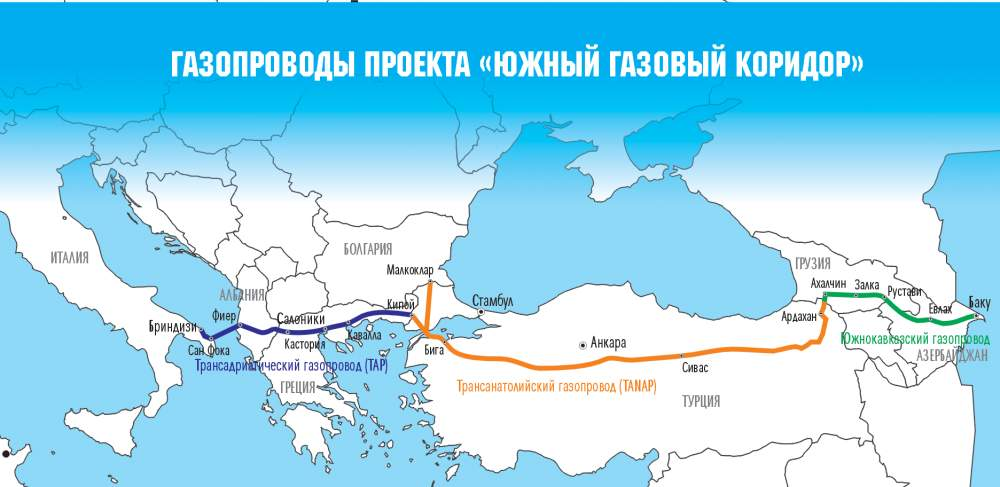 Напомним, что Трансанатоли́йский газопрово́д (англ. Trans-Anatolian Natural Gas Pipeline, сокращённо TANAP) — газопровод из Азербайджана через Грузию и Турцию к греческой границе, где его продолжением является Трансадриатический газопровод.