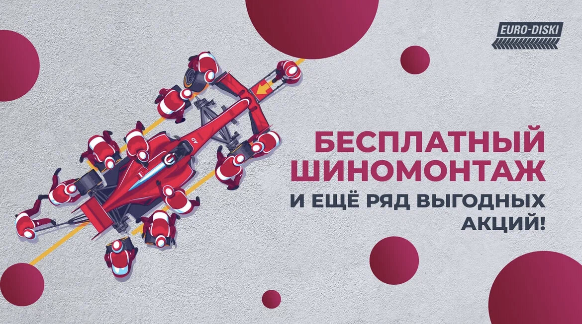 Бесплатный шиномонтаж. Скидка на сезонное хранение. Все наши акции и специальные предложения 💪🏻 #евродиски 👉 Акция: дарим сезонное хранение при покупке шин или дисков Осталось буквально несколько дней действия акции! Купите комплект шин или дисков от 16 диаметра в нашем интернет-магазине и получите в подарок сезонное хранение. 👉 Бесплатный шиномонтаж При покупке комплекта шин или дисков. 👉 Скидка 12% на все летние шины Matador 👉 Акция Continental – «Знаешь, что можешь!» Купите комплект (4 шт.) летних шин Continental диаметром от 16 дюймов в нашем интернет-магазине и получите электронный промокод на топливо. 👉 Акция: компенсируем часть стоимости доставки в регионы. А до ПВЗ доставим бесплатно Специальные условия доставки в регионы: ☑️ Бесплатно доставим до пункта выдачи заказов ☑️ Или компенсируем часть стоимости при отправке транспортной компанией. •Оформите заказ на сумму от 30 000 рублей •Оформите доставку транспортной компанией •Мы компенсируем вам 600 рубл