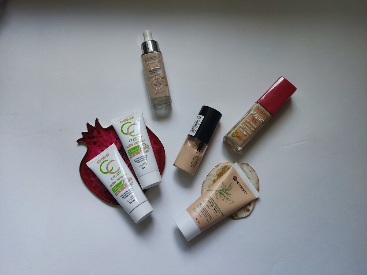 Решила поделиться небольшим обзором тональных средств, которые поселились в моей косметичке. На самом деле их будет 6, просто у одного тона 2 оттенка. Раньше я пользовалась в основном ВВ и СС-кремами, сейчас из-за небольших проблем с кожей нужно что-то поплотнее. Но легкие кремы все равно не покидают мои запасы. Сегодня у подборке: Сначала покажу небольшое сравнение по текстурам И оттенкам У меня довольно светлая кожа, но не прям белая, поэтому обычно я беру просто светлые оттенки:vanilla, fair и пр. Начнем с бестселлера и новинки этого года - Гиалуроновой сыворотки от Лореаль Супержидкое средство и очень пигментированное. Первое впечатление было не очень: как-то она закаталась в поры, подчеркнула шелушения. Но если наносить на хорошо увлажненное лицо, такой проблемы нет. Казалось бы, это очевидно. Но заявляется, что это средство содержит в себе много гиалуронки, что крем не требуется. У меня кожа комбинированная и мне потребовался. Сейчас пользуюсь редко, тк подзагорела и оттено