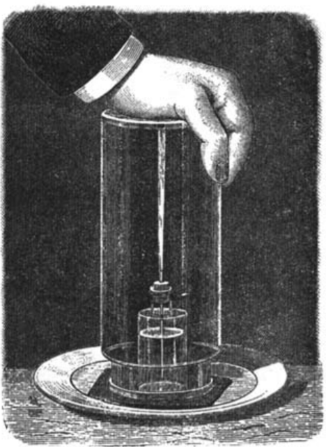 Приготовь для опыта: Наполни водой на три четверти небольшой пузырек из-под лекарства. Пропусти сквозь пробку соломинку как можно меньшего диаметра. Этой пробкой очень плотно закупорь пузырек; соломинка должна доходить почти до дна. Накрой теперь пузырек стеклянной банкой, которую предварительно подержи несколько мгновений опрокинутой над пламенем свечи. Воздух в банке нагреется, расширится, и часть его выйдет наружу. Банка скоро начнет остывать и втягивать в себя воздух обратно. Но ты подложи под пузырек и под большую банку несколько листов смоченной в воде папиросной бумаги или кусок резины и плотно прижми сверху банку, опрокинутую над пузырьком. Тогда воздух снаружи не сможет войти в банку. Давление воздуха в пузырьке будет больше, чем в банке, и поэтому из верхнего конца соломинки ударит фонтан.