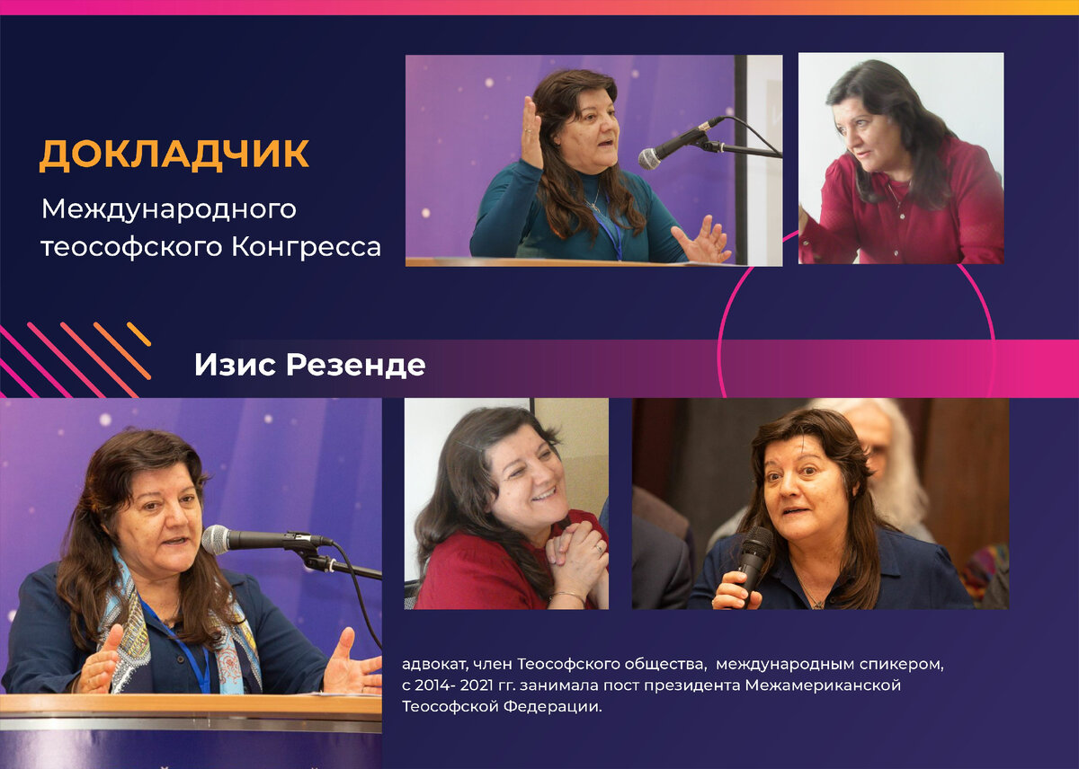 Друзья, знакомьтесь❗ Докладчик Международного теософского Конгресса❗ Изис Резенде – адвокат, член Теософского общества, международный спикер. С 2014-2021 гг. занимала пост президента Межамериканской Теософской Федерации. Член Национального совета директоров Теософского общества в Бразилии, занимает посты директора Библиотеки теософской литературы ТО в Бразилии и президента Ложи Алворада в Бразилии. Читала лекции в Бразилии, Аргентине, Чили, Уругвае, Парагвае, Боливии, Перу, Эквадоре, Колумбии, Венесуэле, Пуэрто-Рико, Доминиканской Республике, Коста-Рике, Никарагуа, Гватемале, Мексике, США, Португалии, Испании, Норвегии, Бельгии, Италии, Индии, Филиппинах, Индонезии, Новой Зеландии и Сингапуре, России. 📌Доклад Изис Резенде «Первоначальное вдохновение для создания Теософского общества» 📌Подробности Конгресса 2022 📌Заявки на участие ОТКРЫТЫ❗ 🧡Место встречи - Россия. Нижний Новгород🧡 #Блаватская #Теософия #Наука #НаучныйСимпозиум #ТайнаяДоктрина #МеждународныйТеософскийКонгресс #Ф