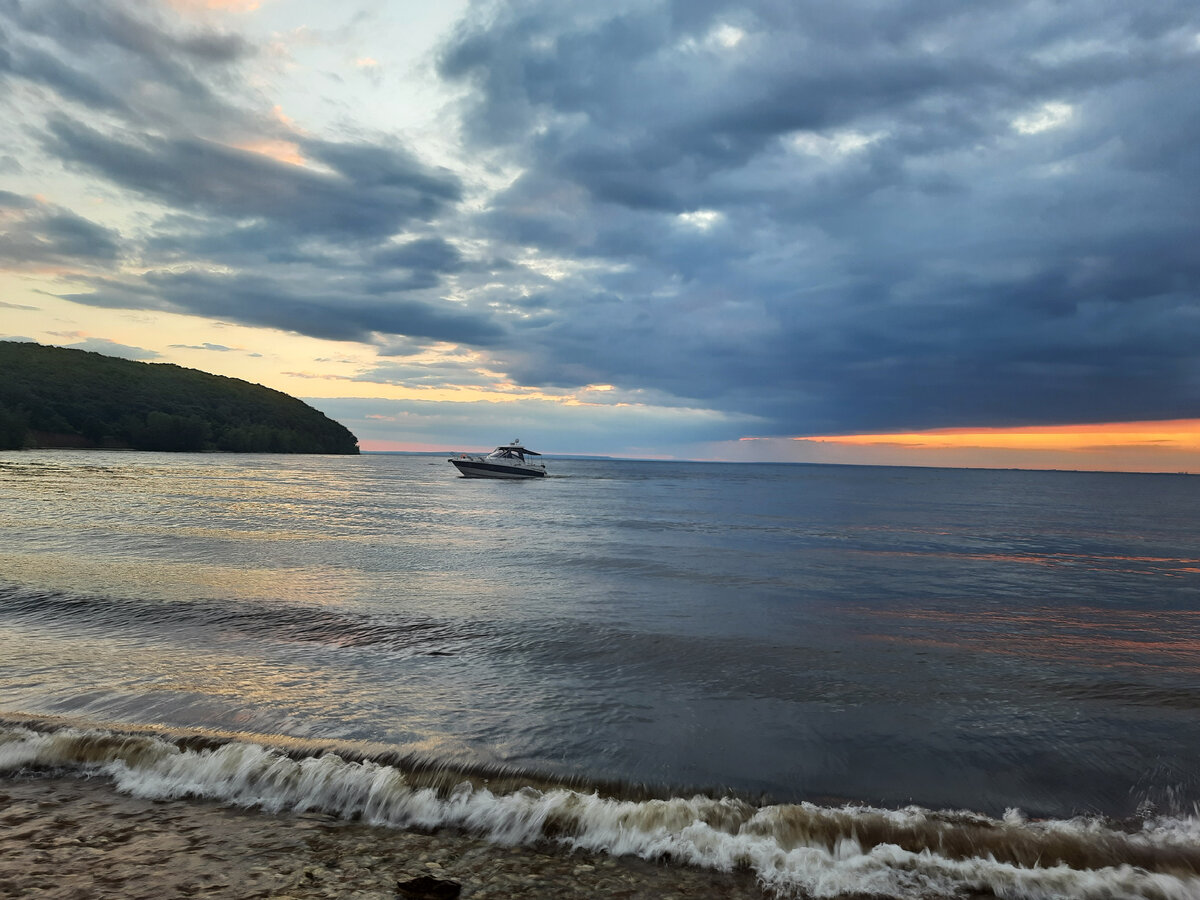 Первая остановка была у Волги, пляж, недалеко от с. Жигули. Все остановки планировали по факту, старались найти по карте и отзывам пляж или место для отдыха. И с первой остановкой нам очень повезло. Вид очень шикарный, вода чистая.