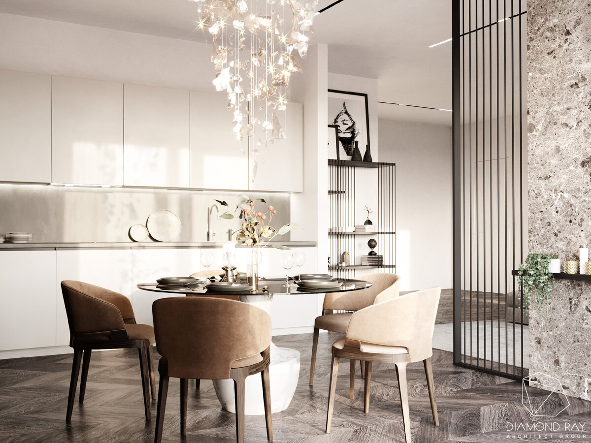 Обеденная зона – то самое место, где чаще всего собирается вся семья, воссоединяясь после долгого трудового дня, для того, чтобы вкусно поужинать и душевно поговорить, обсудить новости и достижения друг друга. Именно поэтому её дизайн требует особого внимания, чтобы конечный результат радовал каждого члена семьи и создавал благоприятную атмосферу для семейных посиделок. С помощью света в этой зоне можно создать приятную, комфортную обстановку и определенное настроение.