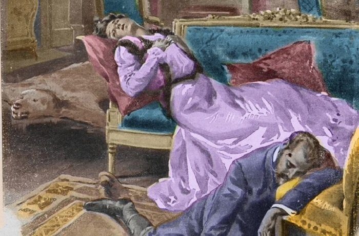 Итак: Рудольф страдает от венерической заразы, ругается с отцом, тот грозит передать трон кому-то еще; плюс входящий в моду мрачный декаданс, плюс впечатлительность принца; еще, говорят, были наркотики. А ведь Мицци звонила в полицию, сообщала, что наследник призывал ее… ну в общем, как Ромео с Джульеттой. Стражи порядка махнули рукой. И Рудольф воплотил свой замысел с Марией.