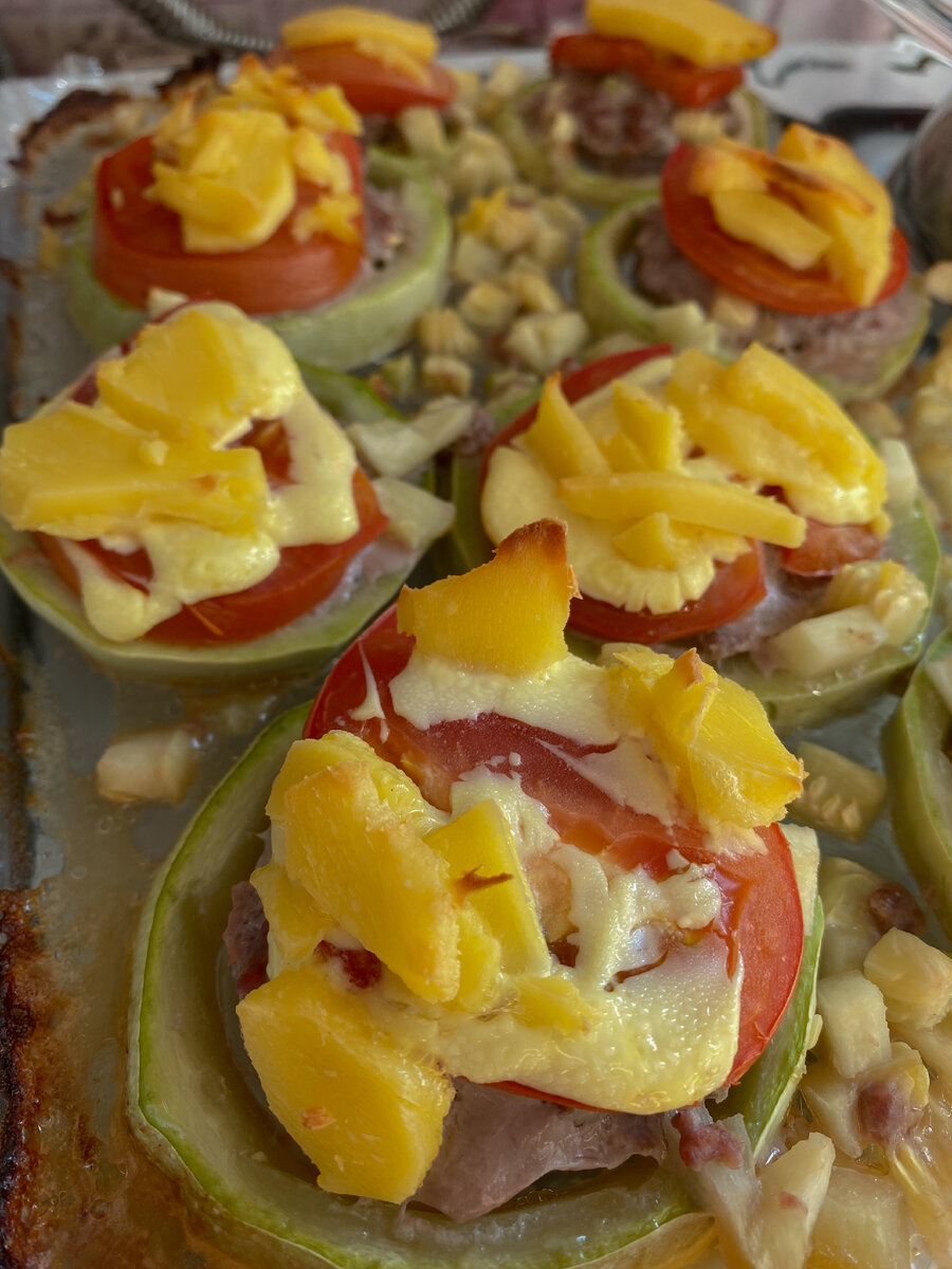 ИНГРЕДИЕНТЫ ⁃ Кабачок- 1 шт. ⁃ Фарш- 150-200 г. ⁃ Помидор- 2 шт. ⁃ Сыр твердых сортов ⁃ Майонез/ сметана ⁃ Соль, перец ⁃ Растительное масло 1. Кабачок нарезаем на средние кольца. 2. Ножом вырезаем сердцевину из колец и мелко режем на кубики. 3. Фарш посолить, поперчить, можно добавить свои любимые приправы, в фарш добавляем мелко нарезанные сердцевины кабачка. Всё хорошо перемешиваем. 4. На противень смазанный маслом кладем кольца кабачка, в середину выкладываем фарш, на этом этапе фарш сверху можно смазать сметаной или майонезом. 5. Сверху кладем порезанный дольками помидор и отправляем в разогретую до 180 градусов духовку на 25 минут. 6. По истечении времени достаем и сверху на помидор кладем порезанный ломтиками сыр. Отправляем в духовку ещё на 5 минут. И вкусные, сочные, нежные кабачки с фаршем готовы, всем приятного аппетита! #еда #рецепты #food #кабачкирецепт #кабачкивдуховке
