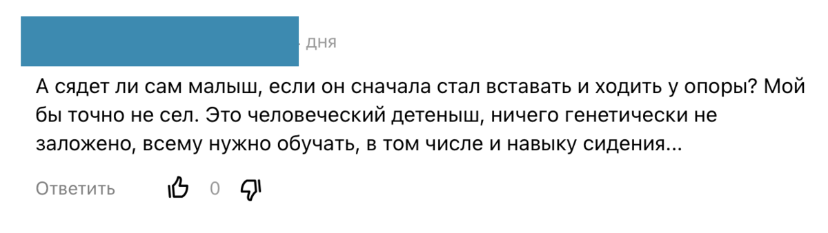На прошлой недели получил комментарий от мамы, которая уверена, что ребёнка НУЖНО сажать. Иначе сам он никогда не научится. Так ли это или всё же природа сама регулирует этот процесс? Разбираемся. Начнём рабочую неделю с приятного — вашего 👍 и подписки на канал:) 4 причины НЕ сажать малыша Поводом для статьи послужил комментарии от мамы. Вот он: Мое мнение следующее. Я НЕ рекомендую сажать ребёнка, потому что: Пример, как смена положения ребёнка в пространстве благоприятно влияет на его развитие Даю отрывок из статьи немецкого физиотерапевта Барбары Цукунф-Хубер (некоторые её приёмы мы используем в онлайн курсах «Малышовый фитнес»): Иоханну (возраст — 6 месяцев) сажали родители и она могла сидеть, но сама принять сидячее положение не могла. «Лёжа на полу, Иоханна заплакала, а мать сказала, что ее дочь хотела бы сесть. На вопрос о том, как Йоханна садится на сиденье, мать пояснила, что она не может сделать это сама.» Она сказала, Иоханна может подтянуться вперёд за протянутые ей руки,