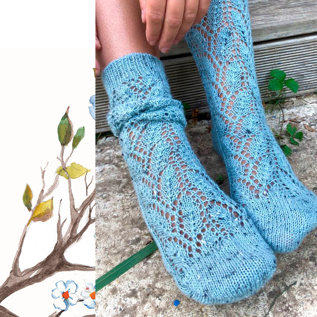 Как связать носки с ажурным узором "листья" или весна на кончиках спиц. Попетельный мастер-класс со схемой.
