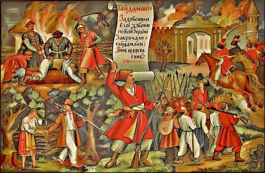 Согласно словарю Брокгауза и Ефрона, слово «гайдамак» произошло от турецкого «гайде» («вон», «пошел»), куда в свою очередь попал арабский глагольный корень «гада» («смущать», «беспокоить»). В историографии гайдамаки впервые упоминаются в первой половине XVIII века как разбойники, хозяйничавшие в Киевском и Брацлавском воеводствах. Не только разбойники, но и бунтари Тем не менее гайдамачество с самого начала его зарождения воспринималось не только и не столько как разбойничье движение — чаще всего это были массовые выступления казаков Малороссии против польского владычества. В фундаментальном труде российского и украинского историка Владимира Антоновича «Исследование о гайдамачестве по актам 1700—1768 гг.» описывается бунт малороссийских казаков против возвращения крепостнических порядков, навязывания католической веры и других условий после заключения Андрусовского мира (в результате правобережная Малороссия вернулась под польское владычество). Массовые восстания охватили Волынь, Подо