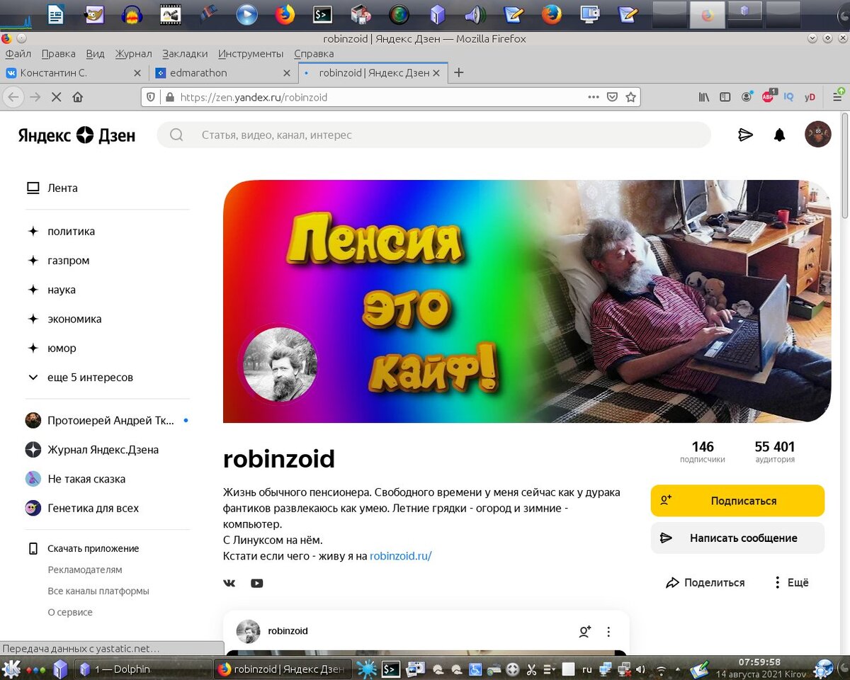 Не, ну сам-то канал основан был год и два месяца назад. Просто эти два месяцы я барахтался без выхода. Писал-снимал-публиковал и ничего мне за это не было. Это немножко печалило, но писать было интересно, тыркаться тоже. Пытался поучиться в разных школах по дзену, но всё это было типичное не то. Этому учиться не хотелось. Платить тем более. Когда-то мой канал выглядел вот так, даже в чём-то симпатишно. На нём можно было повесить картинку, которую я сваял в Гимпе и, в общем, было понятнее что это за канал и кто на нём вошкается. Сейчас, увы, всё. Картинки выключены. Даже скопировать не удалось.