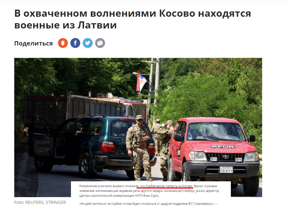 Латвийские СМИ заявляют, что Сербия хотела напасть на Косово