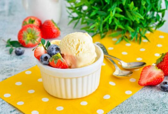 Рецепт великолепного сливочного мороженного, которое просто приготовить дома. Мороженное нежное и вкусное, отлично подойдёт в жару. Ингредиенты: Рецепт: 1) Возьмите сотейник или кастрюлю с толстым дном — это важно, чтобы при варке продукты не пригорели. Вылейте туда яичные желтки, всыпьте сахарную пудру, добавьте ванилин (или ванильный сахар). Хорошо перемешайте продукты до однородности. 2) Порциями влейте в желтковую массу молоко, хорошо размешивая ее после каждого добавления. 3) Проварите массу на среднем огне при постоянном помешивании до загустения. Не доводите ее до кипения, иначе могут свернуться желтки. В результате должен получиться густой однородный крем, очень вкусный, кстати. Полностью остудите его. 4) Холодные сливки влейте в глубокую миску. Начните взбивать их на небольших оборотах миксера, постепенно увеличивая скорость. Взбивайте сливки до устойчивых пиков. 5) Влейте в сливки полностью остывший крем из желтков. 6) Вмешайте крем в сливки. Получится однородная довольно жи