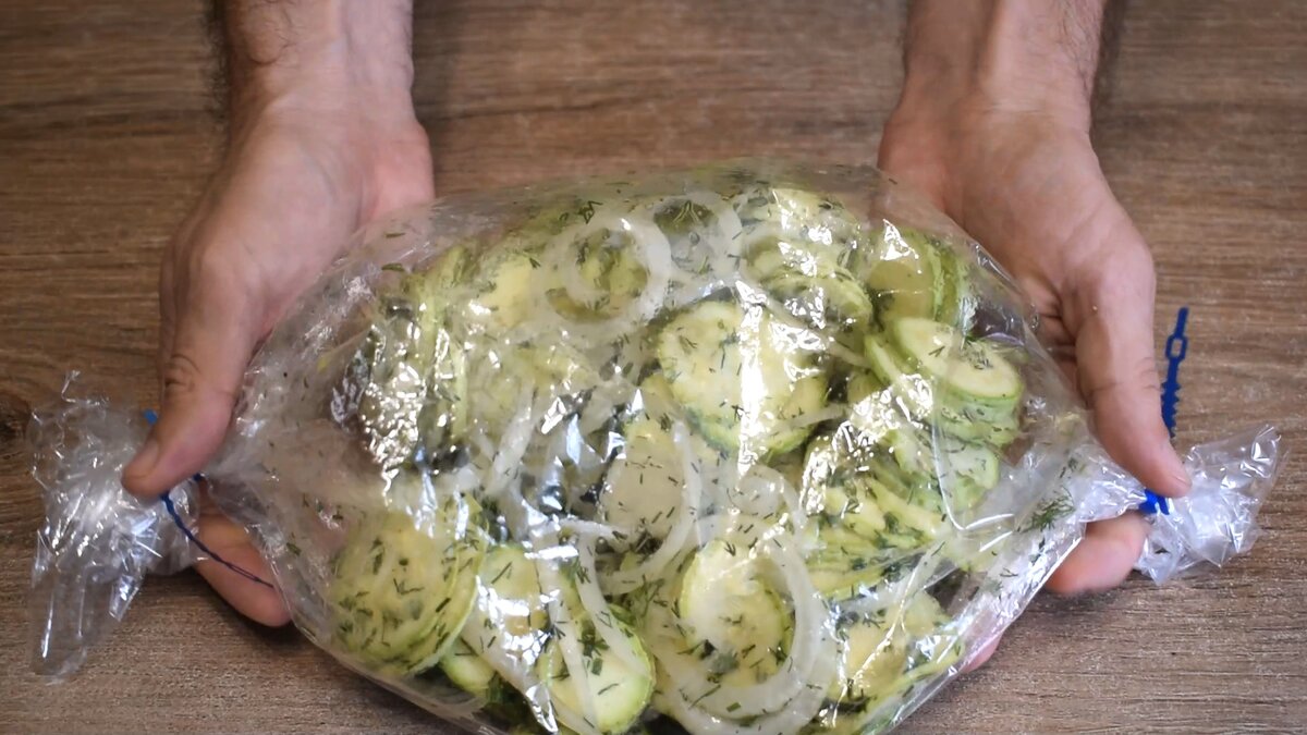 Ингредиенты: Кабачки молодые 2 шт (700 гр) Лук репчатый 1 шт (80-100 гр) Укроп и Мята 15-20 гр Чеснок 2 зубчика Соль 1 ч.л Сахар 0,5 ч.л Горчица 1 ч.л. Уксус 9% 2 ст.л. Перец чёрный молотый по вкусу Перец красный жгучий 0,3 ч.л Рецепт приготовления: Кабачки моем и режем кружочками, лук режем кольцами, укроп и мяту мелко нарезаем. Кладем все нарезанные продукты в пакет для выпечки Добавляем одну чайную ложку соли, половину чайной ложки сахара,одну чайную ложку горчицы, две столовых ложки 9% уксуса, чеснок два зубчика (через пресс) , черный молотый перец, перец красный жгучий. Завязываем пакет, перемешиваем и убираем на 15 минут в холодильник. Через 15 минут достаем и закуска к мясу готова! Кстати я ранее уже выставлял этот рецепт на своём канале в формате видео, переходите и смотрите Так же рекомендую посмотреть: Кабачки, которые покорили весь интернет: невероятно вкусно и просто Вкуснее Вы еще не ЕЛИ! Кабачки "по-Сербски", кто пробует обязательно берет рецепт! Хочу рассказать о рецепте