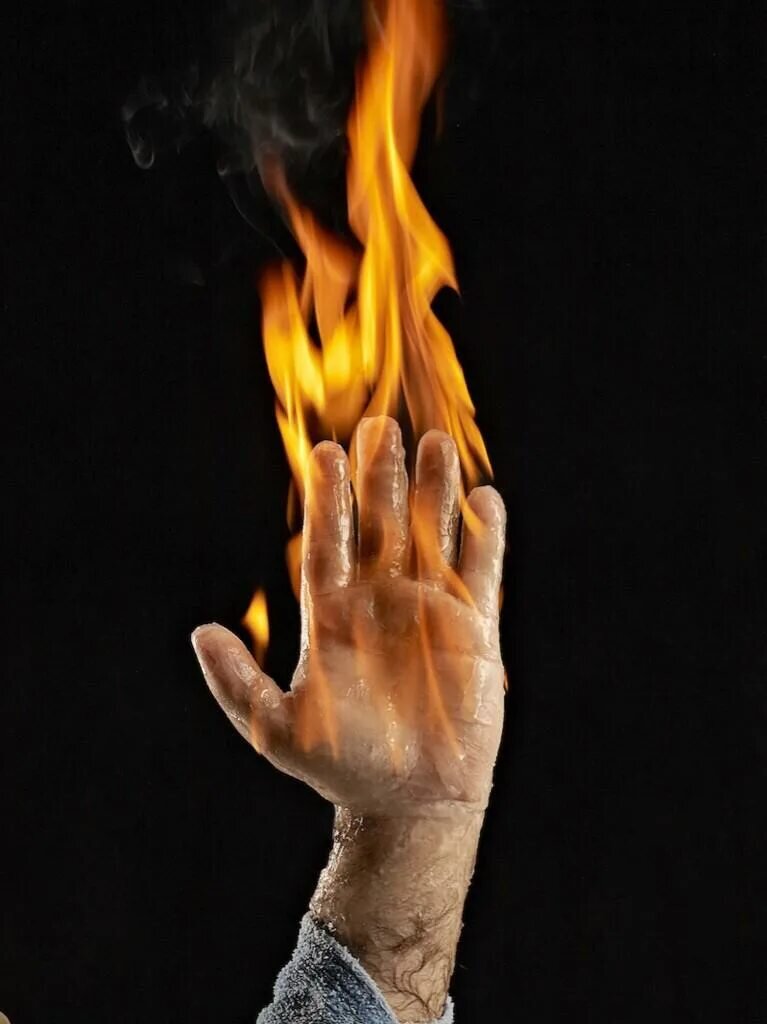 Фокус с горящей рукой, почему огонь горит, но не обжигает руку?