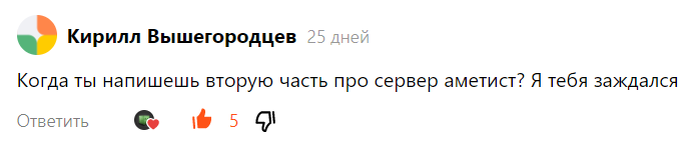 Внимание! В данной статье я не отвечу на все вопросы, так как некоторые повторяются. Приятного прочтения! Всем здрасьте! С вами Слизняк! Преодолев столь долгий путь, мы добрались до 400 подписчиков... За что я благодарю всех вас :) Ну что? Что? Поползли! Планы на ближайшее будущее 1. Снова писать статьи по майнкрафту. Сейчас с компьютером дела обстоят плохо... ведь его ещё не купили... А со статьями получше - в черновиках уже есть "запас статей", которого хватит как минимум на 2 недели. 2. Новые рубрики на канале... Скоро я завершу такие рубрики, как достижения, конец света в майнкрафт и другие. На смену им придут 2 рубрики: Первая будет в формате "vs", то есть versus (или же сравнения). Думаю, там хватит материала на частей 10)) Вторая будет продолжением истории про пергамент. Она, кстати, уже есть на канале, и носит название "Мир аномалий". 3. Возможно скоро я запущу Boosty, благодаря которому вы сможете читать дополнительный контент (или статьи до их выхода). НО: пока что это не точ