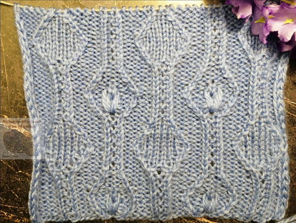 5 ряд: 3 изнаночные, 1 лиц. скр., 1 лицевая, 1 лиц. скр., 3 изнаночные, 2 петли поменять местами с наклоном вправо и провязать 1 лиц. скр. и 1 изнаночная, 2 изнаночные, вывязать п.1-2 из описания "шишечки из 3 петель", 2 изнаночные, 2 петли поменять местами с наклоном влево и провязать 1 изнаночная и 1 лиц. скр., 2 изнаночные