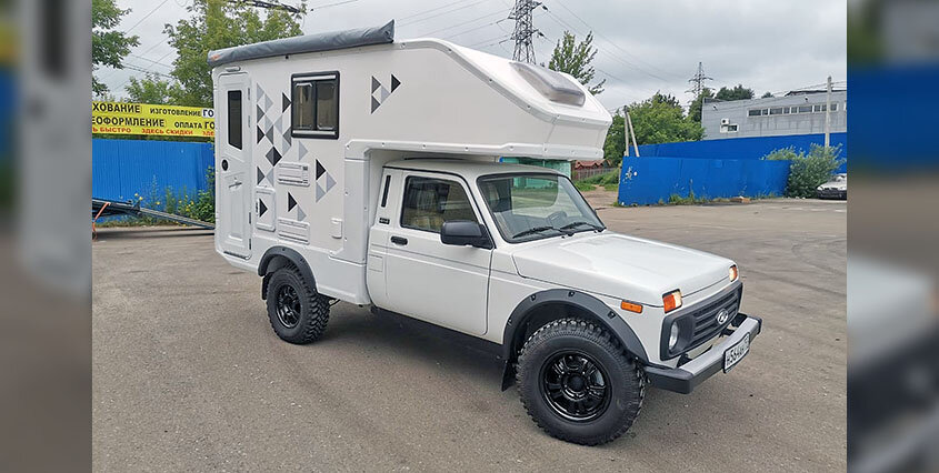 Друзья, здравствуйте! Попалась на просторах интернета вот такая интересная машинка. С одной стороны я понимаю, что это извращение ))) Но учитывая мою любовь к Нивам, причём любовь с точки зрения тюнинга, а не каждодневного использования, я обратил внимание на этот проект. В голове роились мысли начиная с "да ну его, ерунда какая-то" заканчивая "хочу такую по приколу". Попробую объяснить. Первое - почему "да ну его". Ну, смотрите. Нива, даже пятидверная, достаточно маленький автомобиль. Соответственно, кемпер получается тоже маленький. Скорее всего этот проект сделан на базе пятидверки. По передним аркам есть отсыл к "Бронто". Арки точно резанные. О согласовании всего этого я вообще лучше промолчу. Потому, что даже резанные арки (если это не Бронто) уже очень сложно согласовать. Хотя, возможно, что это база коммерческой Нивы с фургоном. Типа вместо фургона просто поставили будку. Эта будка не выходит за пределы допусков по размерам и грузоподъёмности и вроде как всё ровно. Мы просто пе