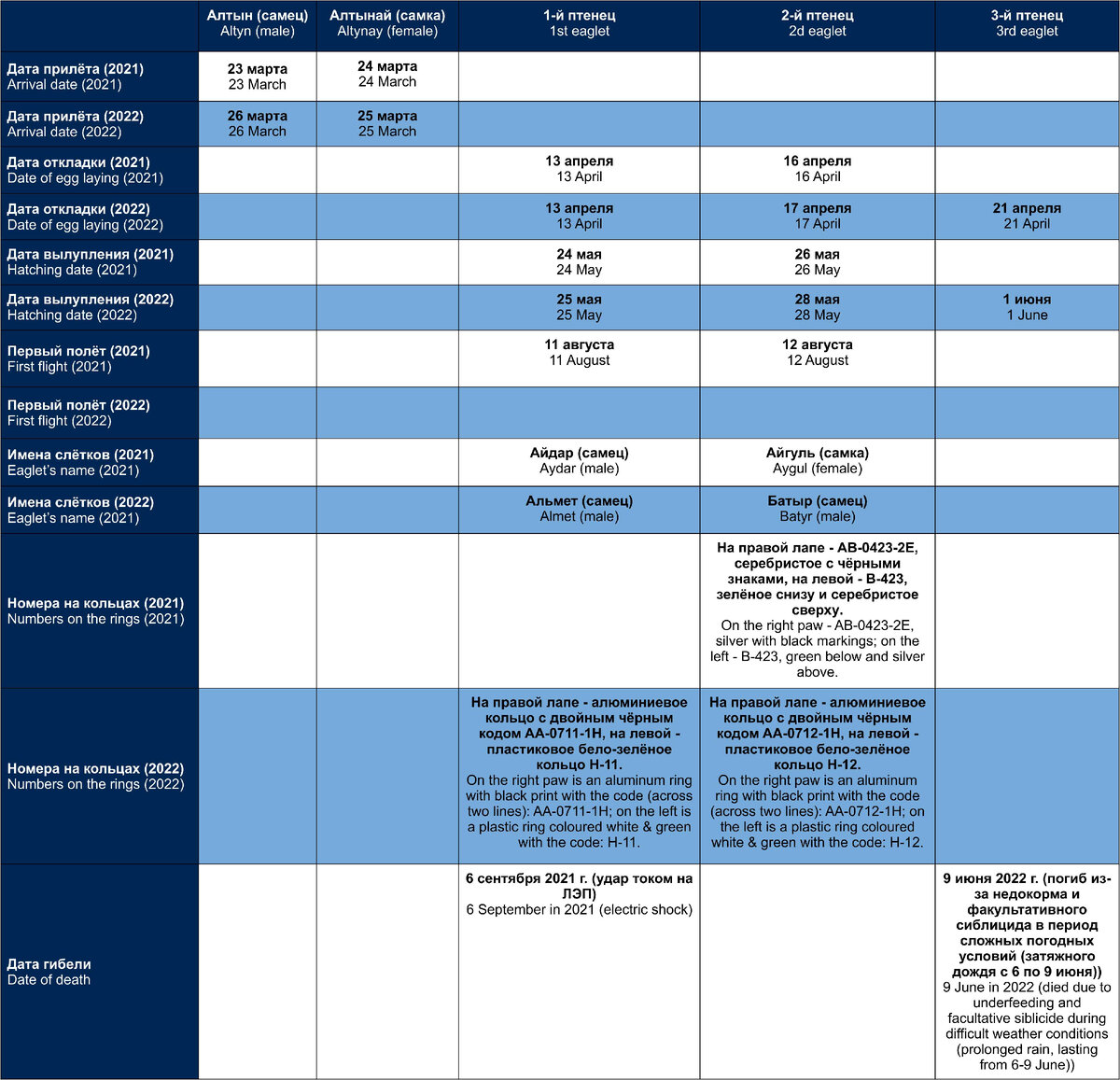 - Almet and Batyr immediately after banding. Video from an ornithologist: https://dzen.ru/video/watch/62c7ec24354a1f4bd24a7876