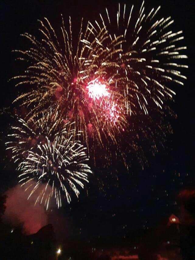 Первого августа большой праздик для местных жителей. Это День Швейцарии. Этой стране не много ни мало 700 лет. Первое, что я увидела, когда проснулась, через окно. Соседи снизу украсили свою террасу флагами Швейцарии в честь праздника. Но что-то еще изменилось... Раньше на грядке слева росла фасоль. Ее выкорчевали. И получилось похоже на могилку. Кот что-ли у них умер... Да,мне везде видятся могилы. Как не позвоню маме домой в Николаев - то-то обязательно взорвалось или кто-то умер. Украсил свой дом флагами не только мой сосед. Но и сосед соседа. А по улице выше, даже на машину поцепили флажек. А этот дом украсили гирляндами из флажков Швейцарии. Многие местные жители сегодня натянули на себя футболки с эмблемой швейцарского флага. Но Лене больше всего понравились воздушные фонарики. А вечером началось все самое интересное. Мы поднялись веррх по склону. Там есть кафетерий, небольшая сцена и детская площадка. Каждый год местные жители городка Нефтенбаха отмечают на той горе День Швейц