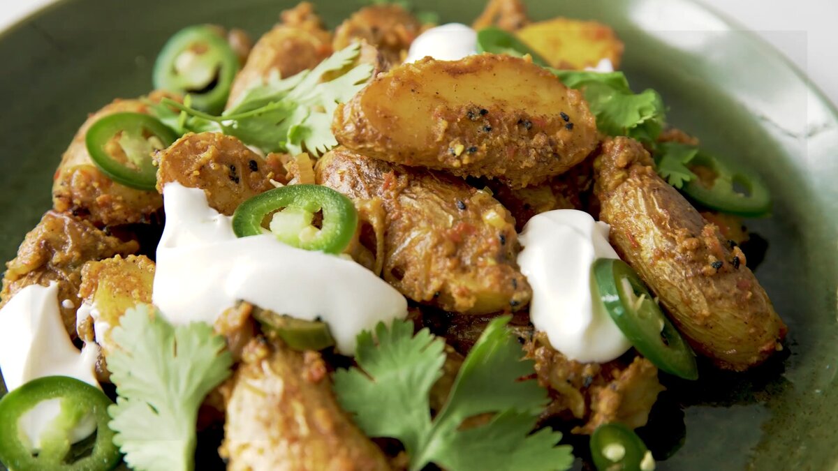 Бомбейская картошка. Неожиданно и вкусно из простой картошки! Сегодня немного индийской кухни, ничего сложного, готовиться все из обычных продуктов. Но как же это вкусно! #картошка #картофель #блюдо #кухня #кулинария #кухнядлявсех #готовимдома #вкуснаяеда #рецепты #еда Время приготовления: 30 мин. Пошаговый рецепт: бомбейский картофель (картофель по-индийски): ШАГ 1: Разрежьте картофель пополам или на четверть, если у вас крупный картофель. Поместите в большую кастрюлю с подсоленной водой комнатной температуры и доведите до кипения. Как только картофель закипит, уменьшите огонь и варите около 10 минут или до готовности. Слейте картофель и дайте ему остыть в кастрюле. ШАГ 2: Очистите имбирь и чеснок и крупно нарежьте помидоры. Поместите имбирь, чеснок и помидоры в кухонный комбайн и измельчите, пока не исчезнут кусочки, отложите. Нарежьте лук-шалот и зеленый перец чили. ШАГ 3: В большой сковороде на сильном огне разогрейте 3/4 растительного масла. Добавить картофель и обжарьте до золот