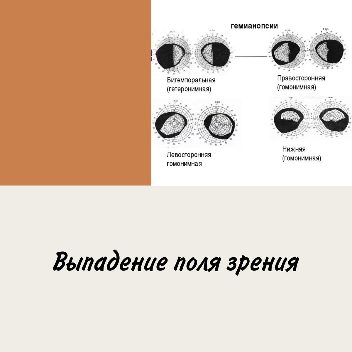 Один из самых грозных симптомов проблем со зрением, это выпадение поля зрения (гемианопсия, скотомы) какого-то участка в нашем поле зрения, вдаль вы видите также, как и раньше, но не все, есть участки того, где вы не видите. Причин такому достаточно много, но все их надо сразу разделить на глазные симптомы и неврологические. Причины глазных симптомов связаны непосредственно с глазом, с его структурами: роговицей, сетчаткой, диском зрительного нерва и др. Это могут быть такие заболевания, как дистрофия сетчатки, отслойка сетчаки, окклюзия артерии, либо тромбоз вены, отек диска зрительного нерва, либо его воспаление и тд. Как правило, такие скотомы ( выпадения) могут быть в любом месте нашего поля зрения. Неврологические причины-это уже то, что нарушает работу, сдавливает зрительные пути в головном мозгу. Причинами часто бывают опухоли головного мозга и тут не зависит от того доброкачественная она или злокачественная, если она пережимает нерв, то появляются гемианопсии, в зависимости