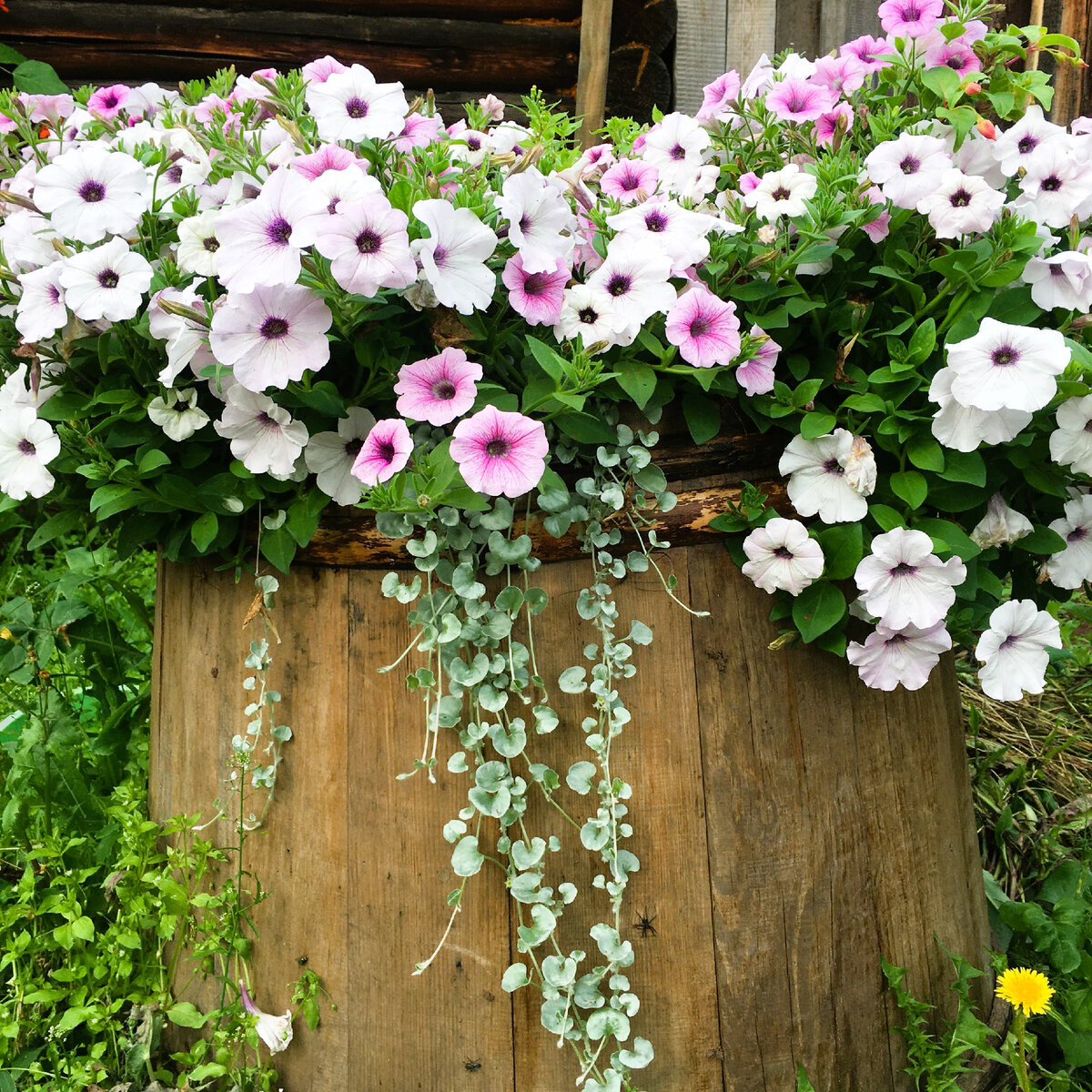 - Да ты же настоящий Плюшкин! – Говорю я мужу, который бережно собирает все старые гаечки, гвоздики, проволочки, детали и не дает выбрасывать старые вещи, пока не осмотрит их на предмет возможной нужности. Муж смеется, у нас с ним давнее перманентное противостояние в этом плане. Мне нужно все выбросить и вычистить, чтобы ничего лишнего не было. А ему наоборот – нужно создать запас, из которого он потом, как фокусник, извлекает всякие необходимые штучки. Вот из этого стратегического запаса мы и делали нынче разные дачные штучки и некоторые получились совсем неплохими. Конечно это не шик-модерн, где каждая деталь смотрится, как произведение искусства, но некоторые идеи вполне приличные. Вазон для цветов из старой деревянной бочки Деревянные бочки достались нам в наследство от старых хозяев (мы купили старый домик в 2019 году). Раньше в них квасили капусту и грибы, солили огурцы на всю зиму, но нам в таких объемах соленья не нужны, да и мыши поработали над деревом, нагрызли дырок, когда м