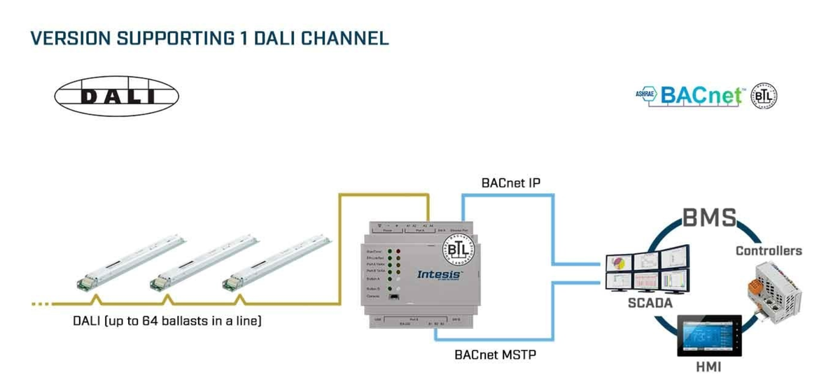 Системы управления освещением необходимы для обеспечения энергосбережения, повышенного комфорта и гибкости пространства как для управляющих объектами, так и для пользователей здания. DALI — это специальный протокол для цифрового управления освещением, который позволяет управлять надежными, масштабируемыми и гибкими сетями освещения. Цифровой характер DALI обеспечивает двустороннюю связь между устройствами, поэтому устройство может сообщить о сбое или ответить на запрос о своем состоянии или другой информации. Проводка относительно проста: питание и данные DALI передаются по одной и той же паре проводов, и нет необходимости в отдельном шинном кабеле. Стандарт DALI находится в постоянном развитии, и по мере его развития мы также внедряем расширенные функции в наши платформы, чтобы обеспечить более широкую интеграцию сети освещения DALI в BMS, предлагая управление для различных типов пользователей и устройств. Теперь, включая экземпляры кнопок и экземпляры аналоговых входов стандарта DALI